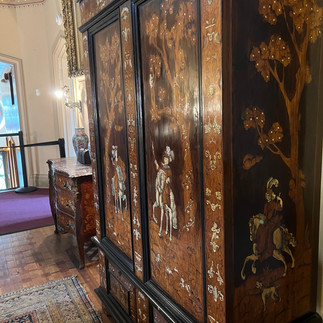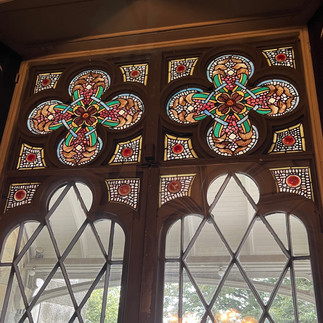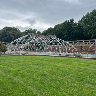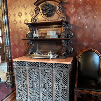 As we joined out tour group and moved from the welcome center to the main building, the guide regaled us with some of the history of the mansion. This continues as we took the two-floor tour of the main building and a self-guided tour of the grounds and bowling alley. There were so many amazing things to see, but my favorites were the horse stalls converted into dining tables, and the unused greenhouse. There is just something so poignant about the stark white metal frame against the blue sky. No glass, no plants, just a bare metal frame where once beauty had been. I could have spent hours just sitting in the space, reading my book, and imagining what might have once been.